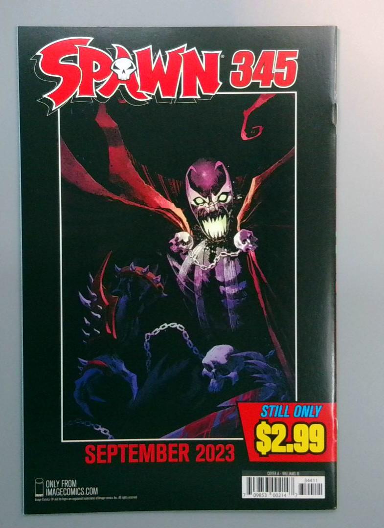 Spawn #345 continues the epic saga of Al Simmons as Spawn, the hellspawn anti-hero battling demonic forces and his own tormented past in a gritty urban nightmare. This issue features intense action sequences with Spawn confronting grotesque supernatural threats, showcasing Todd McFarlane's signature blend of horror, violence, and redemption themes. Released in September 2023, it's a key installment in the long-running Image Comics series, highlighting Spawn's iconic cape, chains, and symbiotic suit in dynamic artwork.