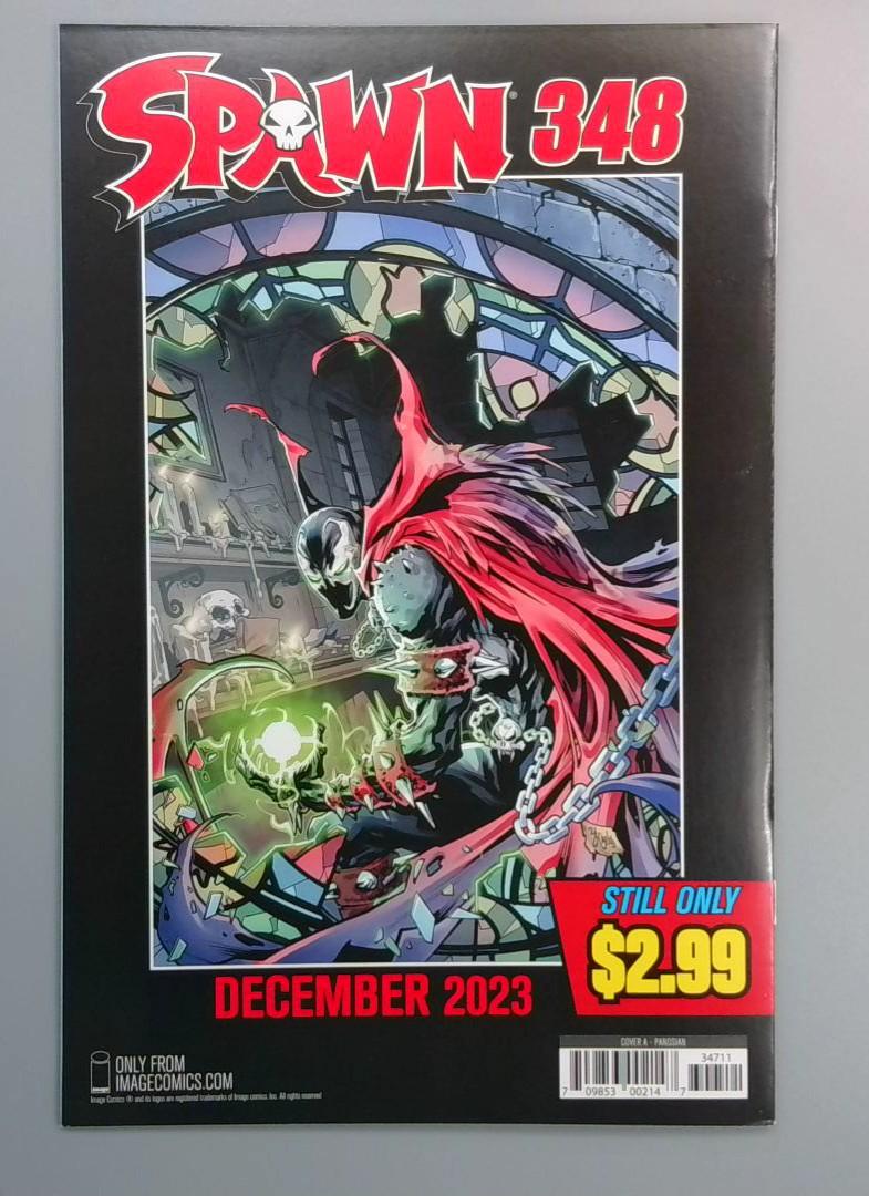 Spawn #348 continues the epic saga of Al Simmons as Spawn, delving into supernatural battles and demonic forces in a richly detailed urban hellscape. This issue features intense action sequences with Spawn wielding his necroplasmic powers against otherworldly threats, highlighting themes of redemption and eternal conflict. The cover artwork by Todd McFarlane showcases a dramatic depiction of Spawn in a stained-glass inspired setting, emphasizing the comic's signature gothic horror style.