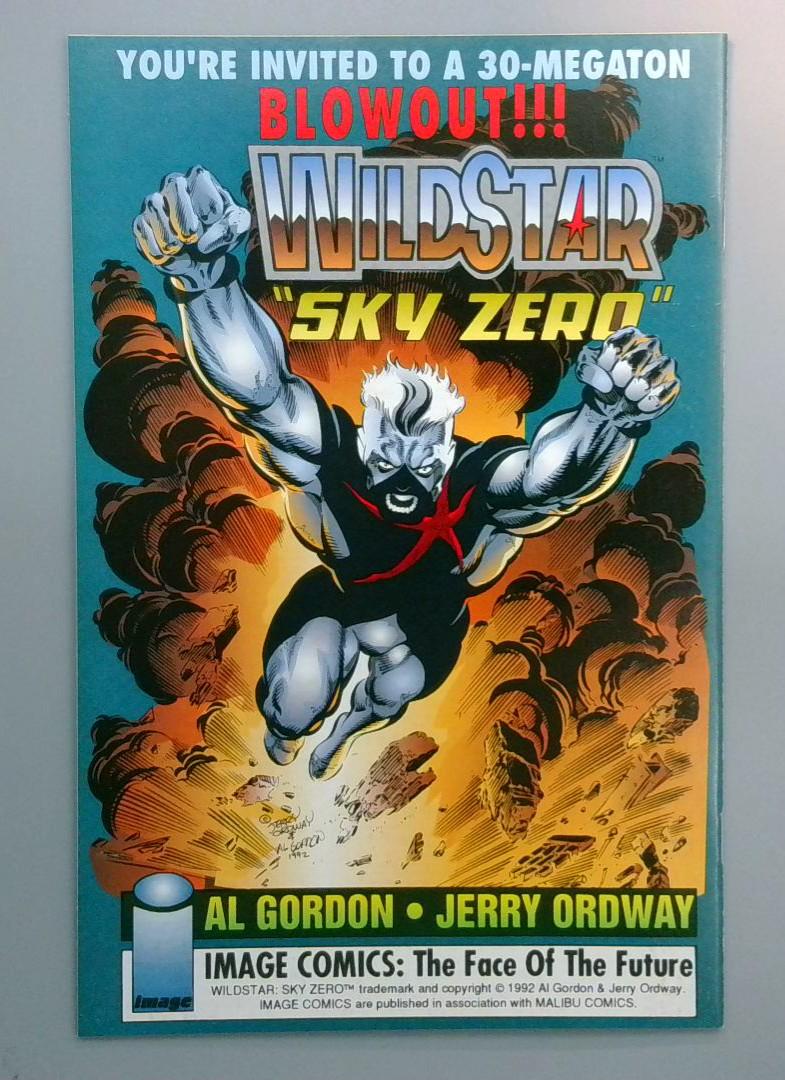 Spawn #7 (Image Comics, July 1993) features Spawn in intense action, wielding heavy weaponry and chains against supernatural foes in the gritty urban hellscape of his world. This early issue advances the storyline of Al Simmons' resurrection as the hellspawn warrior, battling demonic forces and uncovering betrayals from his past life. Cover art by Todd McFarlane captures the character's iconic necroplasmic power and armored menace. WildStar: Sky Zero #1 (Image Comics, 1993) kicks off the WildStar series with the armored hero launching into explosive aerial combat, showcasing his superhuman strength and high-tech suit in a futuristic battle against cosmic threats. Created by Al Gordon and Jerry Ordway, this debut issue introduces the character's origin as a guardian of the skies, blending sci-fi action with dynamic visuals of flight and destruction. The cover highlights WildStar's silver form streaking through the atmosphere, emphasizing themes of heroism and zero-gravity warfare.