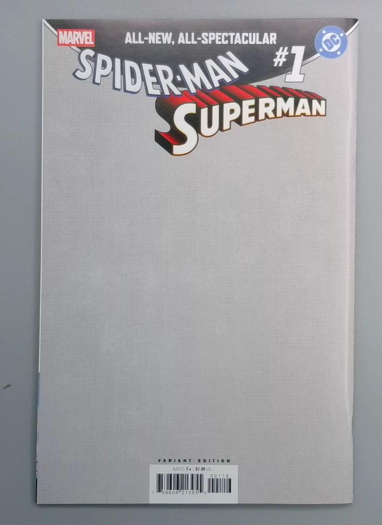 Keywords: Spider-Man Superman variant edition Marvel DC comic crossover collector's item superhero art blank cover action comics