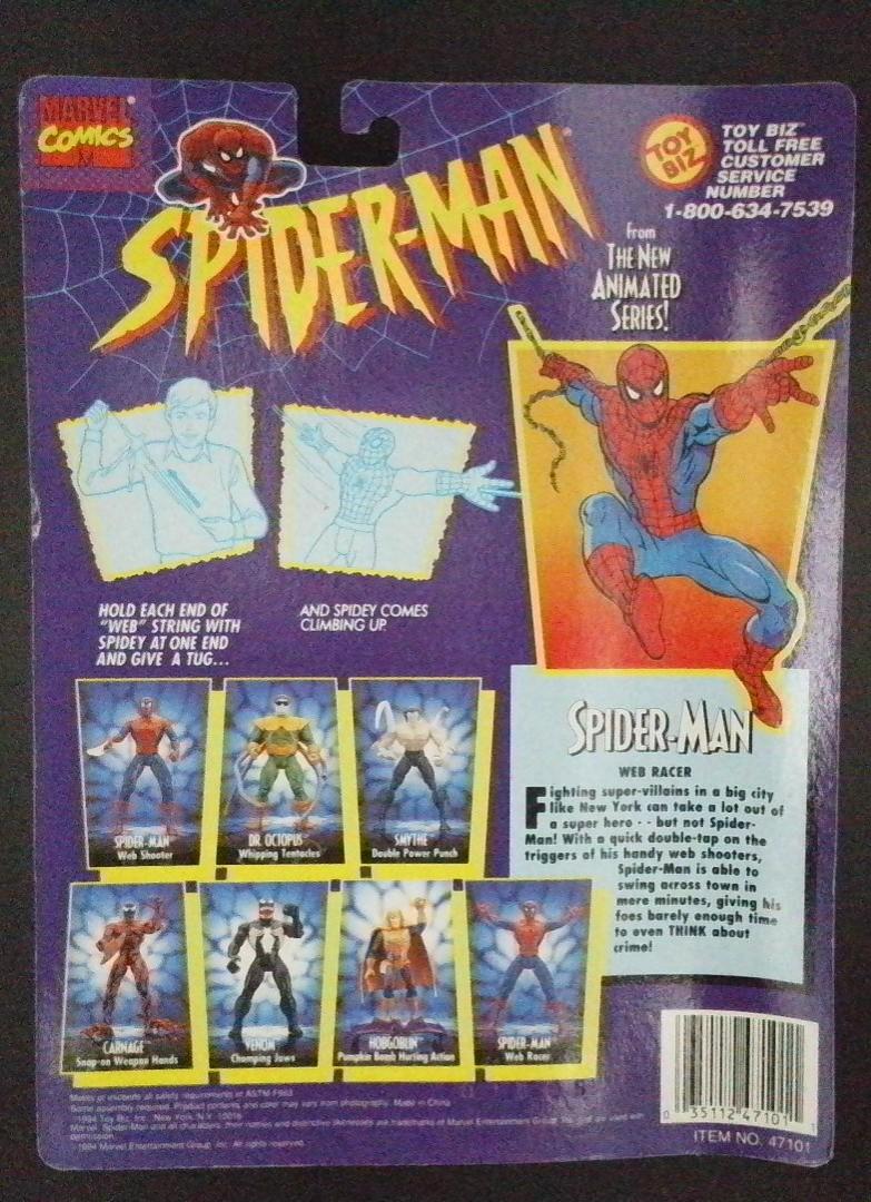 Keywords: Spider-Man Web Racer Toy Biz 1994 action figure Marvel Comics animated series collector pin red and blue costume vintage toy