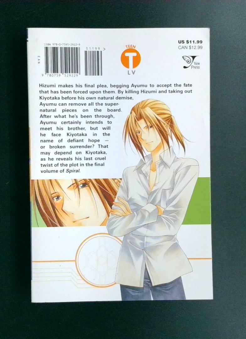 Hizumi makes his final plea, begging Ayumu to accept the fate that has been forced upon them. By killing Hizumi and taking out Kiyotaka before his own natural demise, Ayumu can remove all the supernatural pieces on the board. After everything he's been through, Ayumu certainly intends to meet his brother, but will he face Kiyotaka in the name of defiant hope—or broken surrender? The final twist of the plot is revealed in this climactic conclusion to the Spiral saga.