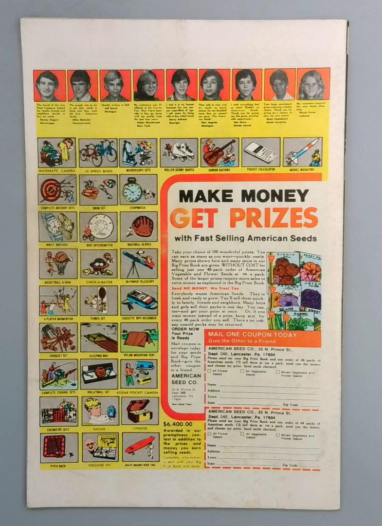 This debut issue features the iconic characters from the film with cover artwork showcasing Spock and other Enterprise crew members alongside the USS Enterprise starship. The cover proudly announces "Star-Studded First Issue!" and promises "A 23rd Century Odyssey Today!" as the tagline. The back cover includes promotional material and a vintage American Seed Company mail-order prize advertisement typical of comics from this era.