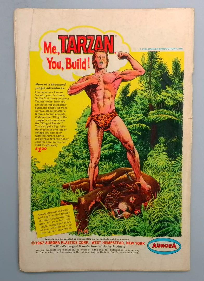 Me, Tarzan, You, Build! - A 1967 Aurora Plastics Corporation hobby kit advertisement, included as a back cover or insert feature showcasing vintage model kit offerings from the era.