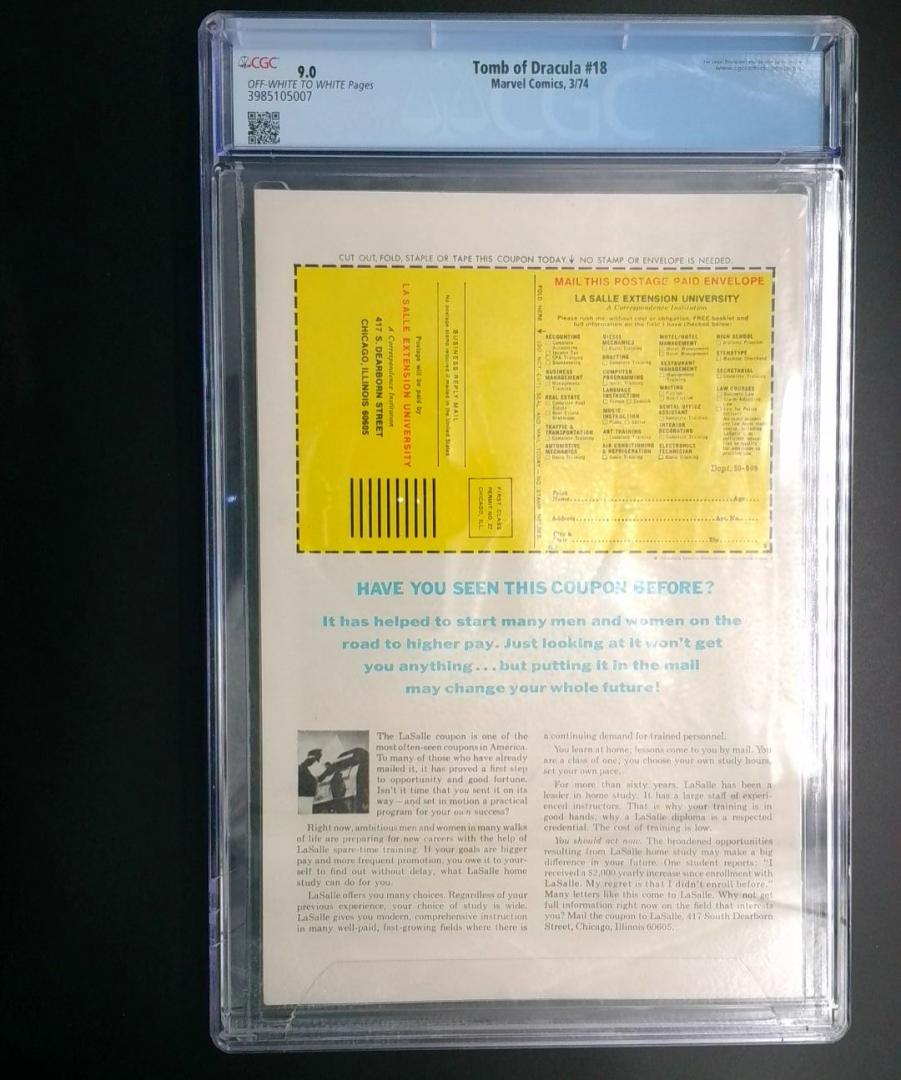 Keywords: Tomb of Dracula Marvel Comics horror comics CGC 9.0 Bronze Age vampire mythology Gene Colan Tom Palmer supernatural horror collectible comics