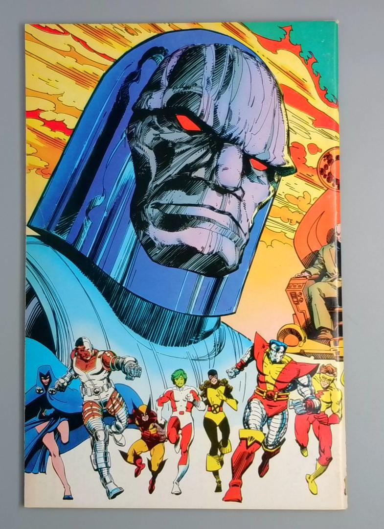 Marvel and DC Comics crossover event featuring the Uncanny X-Men and the New Teen Titans. This landmark issue brings together two iconic superhero teams in an epic storyline, showcasing characters like Phoenix, Cyclops, Robin, and Starfire. The stunning cover art highlights the cosmic scale of the adventure, with a dramatic background of explosions and a powerful central figure. A must-have for fans of both Marvel and DC superhero teams, this crossover represents a rare collaboration between the two major comic book publishers.