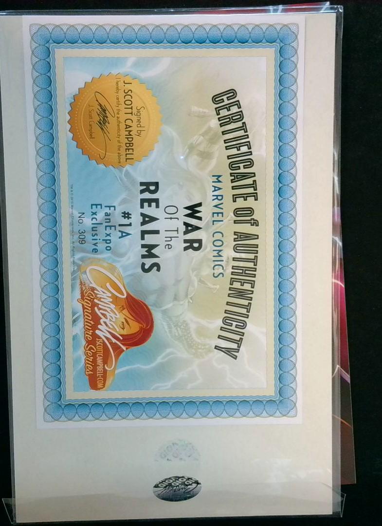 Keywords: War of the Realms J Scott Campbell Fan Expo Variant Marvel Comics Thor Captain Marvel signed comic Certificate of Authenticity exclusive cover comic book collectibles